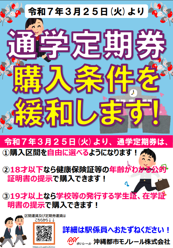 令和7年3月25日より通学定期券購入条件が緩和されました。