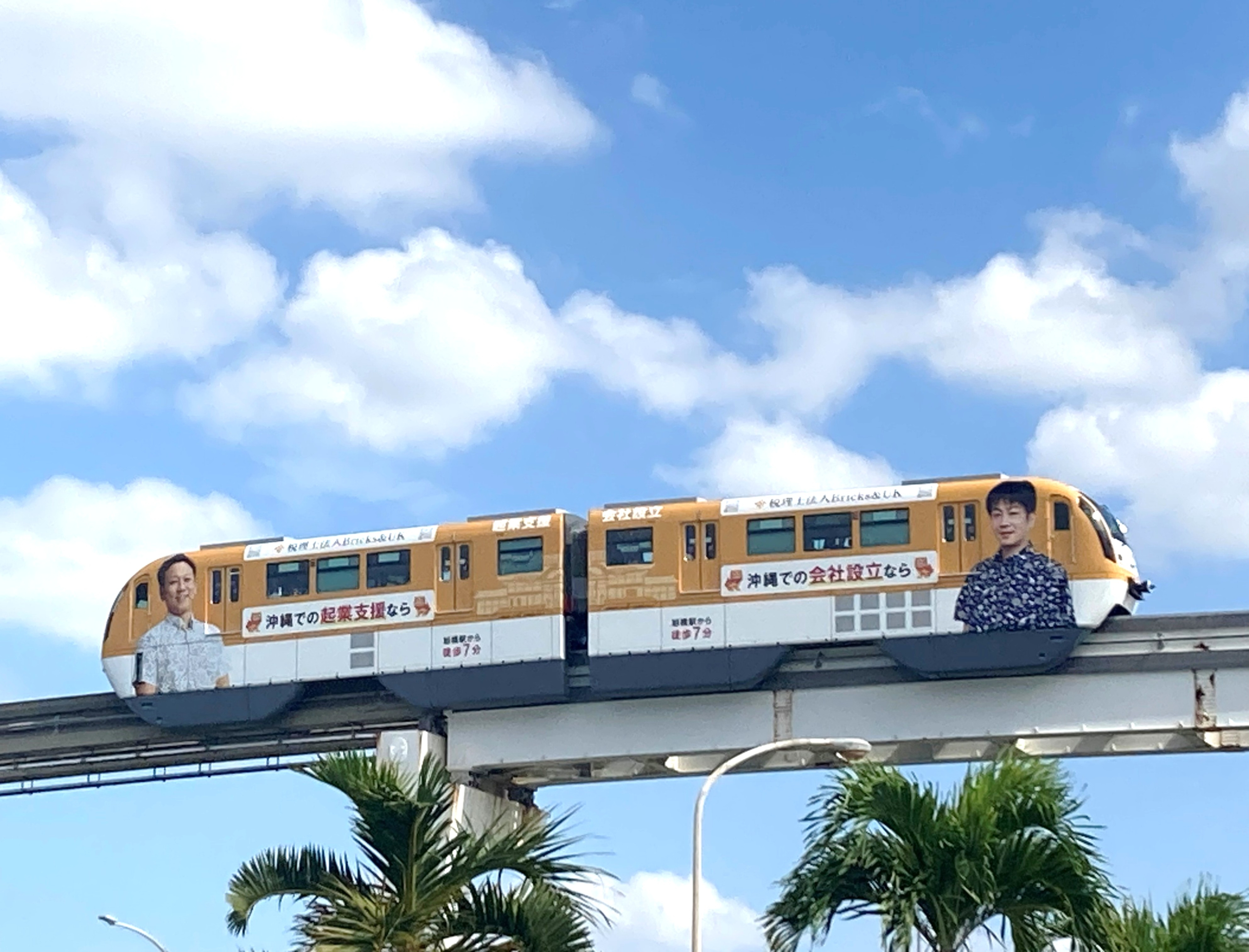 弊社初の民間広告ラッピングです。イオンモール沖縄ライカム開店前から運行し、県民や観光客への関心を高めました。
